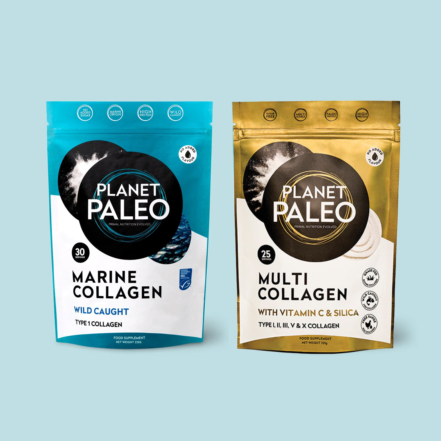 Planet Paleo’s marine collagen is sourced exclusively from wild-caught fisheries certified by the Marine Stewardship Council (MSC) — the global gold standard for sustainability and responsible sourcing. Our bovine collagen is KRAV-certified organic and sourced from LIAF grass-fed cattle that roam freely in the natural grasslands of Argentina, while our eggshell membrane collagen comes from free-range chickens.