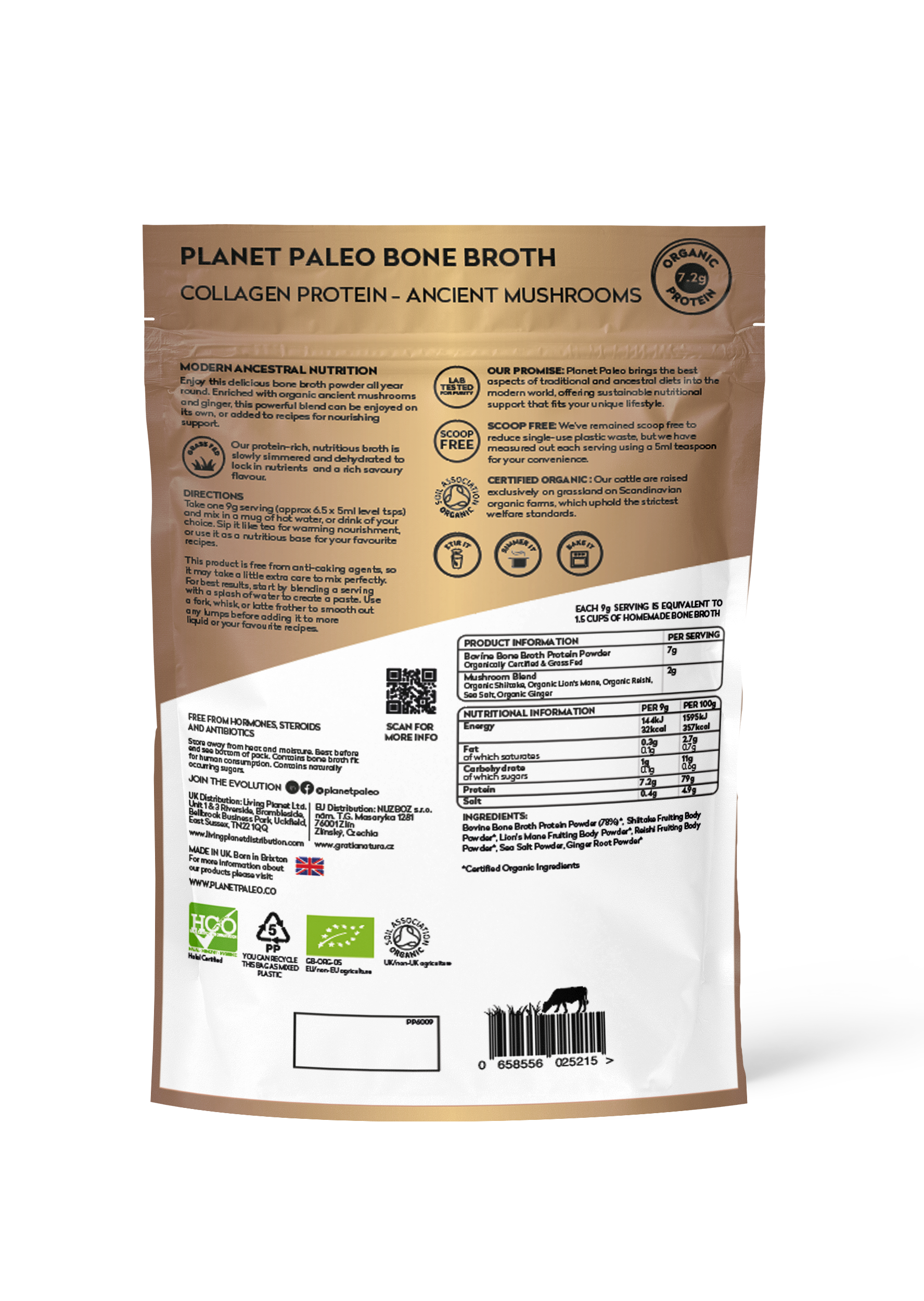 Our bone broth is sourced exclusively from organic grass-fed cattle in Scandinavia and slowly simmered to carefully extract all the beneficial nutrients.